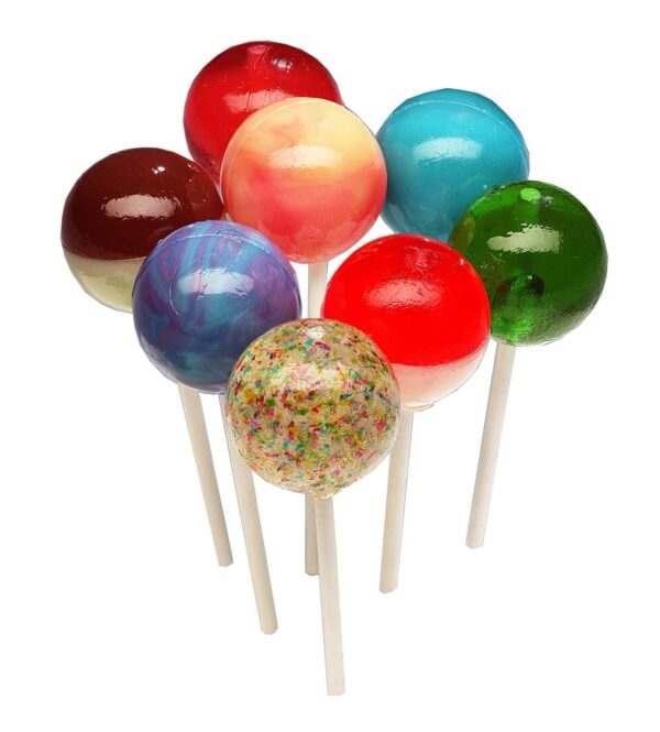 Our lollipops come 480 in a case and are separated into eight 60-count bags. Each bag has 12 flavors varying in popularity. The flavors are Cotton Candy, Bubble Gum, Wild Cherry, Watermelon, Strawberry Banana, Blue Raspberry, Orange Creamsicle, Blueberries and Cream, Cherry Cheese Cake, Grape Soda, Strawberry Shortcake, and Candy Apple. The profit margin is 50% when selling each one for a dollar. One case minimum order. Free Shipping